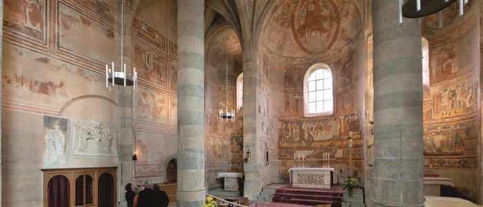 Fondé par Charlemagne vers l’an 800 dans une vallée des Grisons, ce bien est resté authentiquement médiéval. L’église est l’une des rares constructions de l’époque carolingienne à être parvenue jusqu’à nous presque intacte. Ses fresques du IXe siècle, les plus importantes qui nous restent du haut Moyen Âge, et ses peintures des XIIe et XIIIe siècles témoignent de l’apogée du christianisme médiéval. L’imposante tour de la Planta, construite en 957, est le monument le plus ancien de la région alpine. La vie monacale continue de marquer ce lieu de culture et de recherche archéologique.