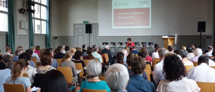 En juin 2017, la première réunion sur la Plateforme suisse Éducation 2030 a eu lieu à Berne. Cet événement a rassemblé quelque 200 acteurs des secteurs de l’éducation, de la politique, de l’administration et de la société civile. Outre des présentations thématiques et des tables rondes, une série d’ateliers a également été organisée.